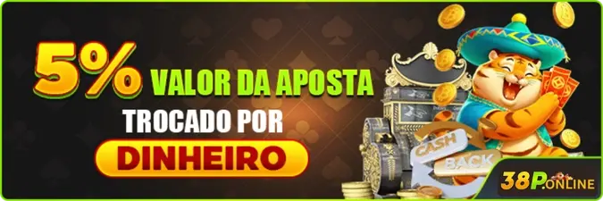 Sabemos que nem todos os dias são de sorte total, mas no 38P, você nunca sai de mãos vazias. Oferecemos um sistema de troca onde 5% do valor das suas apostas retorna diretamente para o seu saldo em dinheiro. É a segurança que você precisa para continuar jogando com inteligência e menos risco.